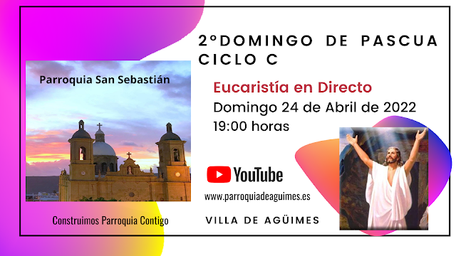 Enlace en Directo, Eucaristía del 2º Domingo de Pascua a las 19:00 h en la Parroquia de San Sebastián de Agüimes. AVISO:Si hubiera algún corte en la conexión, les facilitamos este reproductor, para recuperar la celebración en Directo, solamente esperar unos segundos que conecte nuevamente.